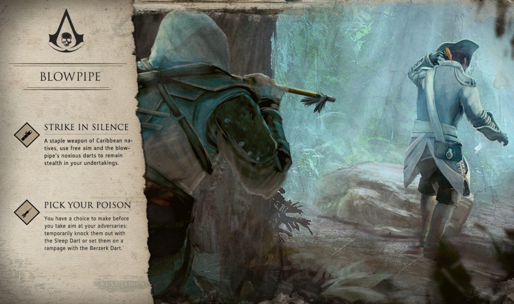 Ubisoft has released a new batch of screenshots for much anticipated title, Assassin’s Creed IV: Black Flag. The images below explain how to accomplish your mission using stealth. Edward will be armed with tools like blow pipe, smoke bombs and the signature weapon- hidden blade. Blow pipe will allow you to select a dart before you aim at an enemy. You can either knock them out with the sleeping dart or with Berzerk dart make them go crazy attacking anything that is in their range including animals, civilians and allies. Some of the activities are also explained such as Warehouse to Plunder and Assassinations Contract. Completing these activities without being detected, you earn bonus money.