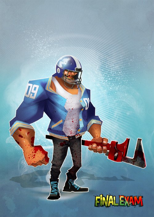 Brutal Joe is the biggest playable character in Final Exam, and Mighty Rocket Studios have issued the following pieces of artwork illustrating this melee-oriented powerhouse in their multiplatform 2.5D action horror sidescroller. Based on the Obscure survival horror series, Final Exam strays from the gritty spine-chilling atmosphere towards a more arcade cartoon-like one, focusing on fun and immersion in gameplay. The images below range from early concept to multiplayer models and skins to the final concept for Brutal Joe, who seems to be happiest with a chainsaw, baseball bat or even a big wrench. You can check out loads of other exclusive concept art and screenshots from the game at this link.